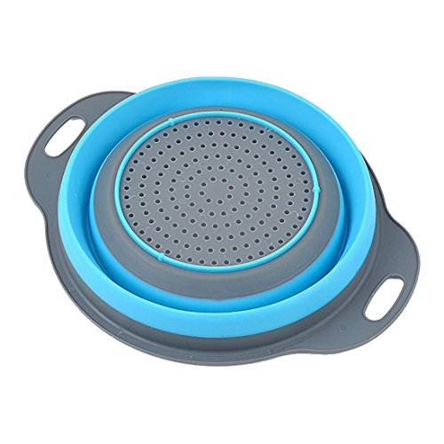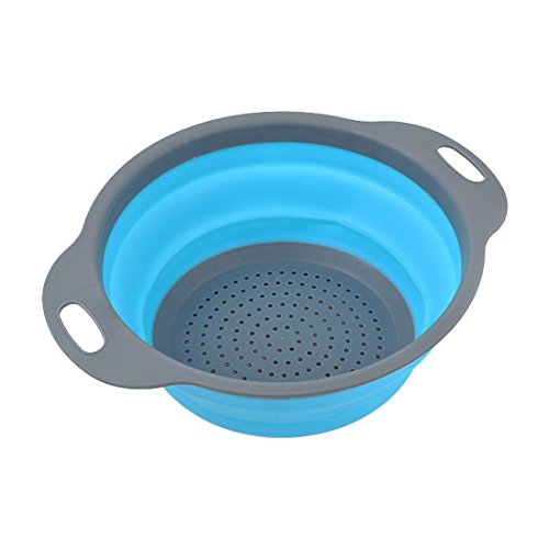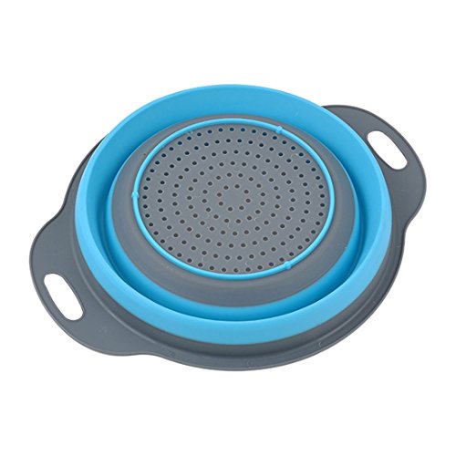 Faltbares Küchensieb aus Silikon, Obst- und Gemüsesieb, blau, Large